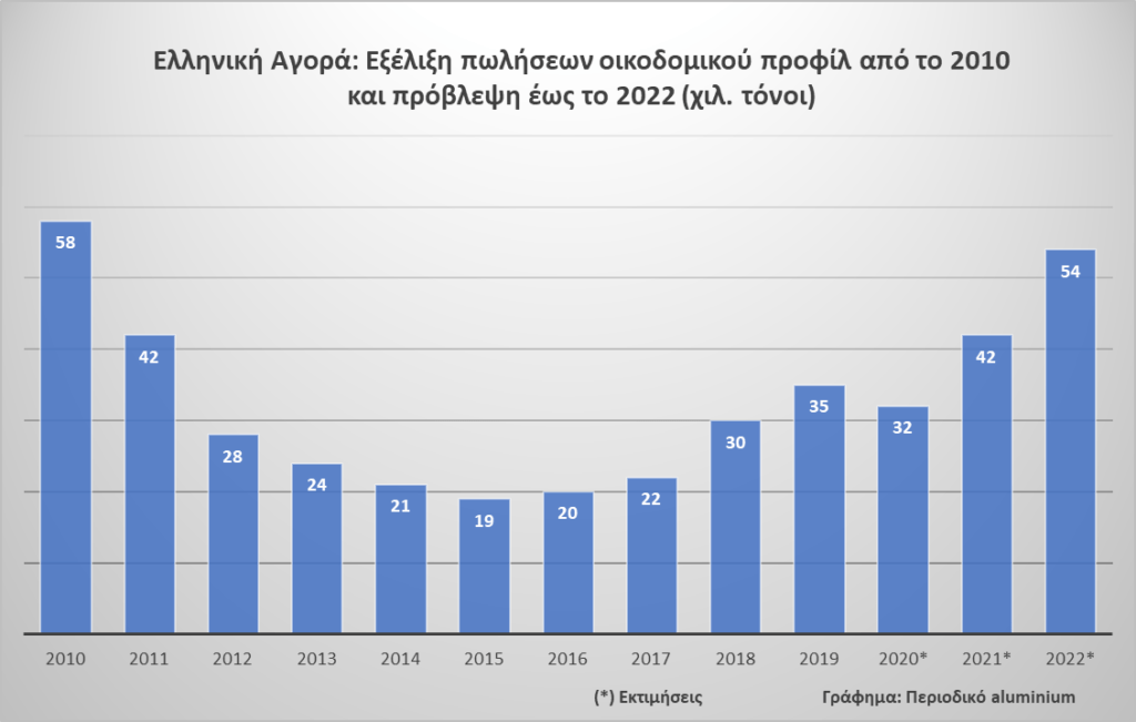 Με μία μικρή αναμενόμενη πτώση των πωλήσεων λόγω της πανδημίας το 2020, εκτιμάται ότι μέχρι το 2022 οι πωλήσεις οικοδομικού προφίλ θα αγγίξουν τους 54 χιλ. τόνους, με προβλεπόμενη αύξηση 10-15% ετησίως για το διάστημα μετά το 2022.